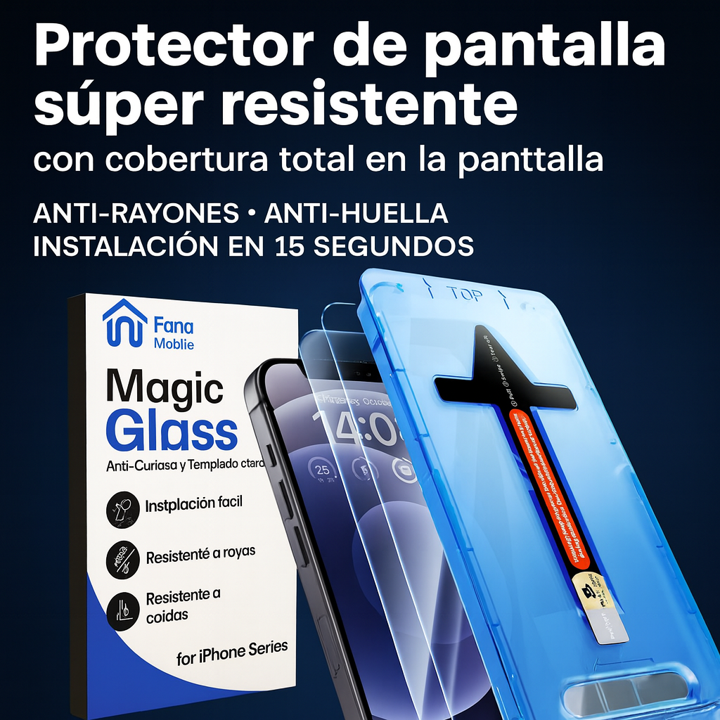 Creamos este protector de pantalla Magic Glass Autocolocante porque nosotros mismos lo necesitábamos. Vivíamos con la ansiedad de los rayones, el miedo a una caída y las instalaciones con burbujas. Descubrimos que proteger el iPhone podía ser más simple y mejor. Por eso diseñamos la Lámina Autoadhesiva 9D de FONO MOBILE: cobertura total 360° y dureza 9H, claridad HD y tacto original, capa anti-huellas, case-friendly y guía de alineación para instalar en 60s. Un pack de 2 pensado para la vida real: más resistencia, menos preocupaciones.