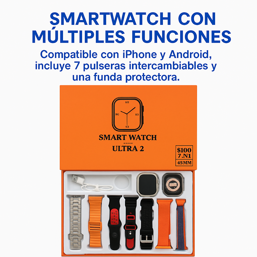 El Smartwatch ULTRA 2 combina tecnología, estilo y comodidad para que lleves el control de tu salud, tus entrenamientos y tus notificaciones en un solo lugar.